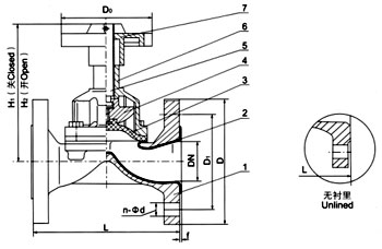 英標(biāo)隔膜閥主要外形尺寸和連接尺寸 (mm)